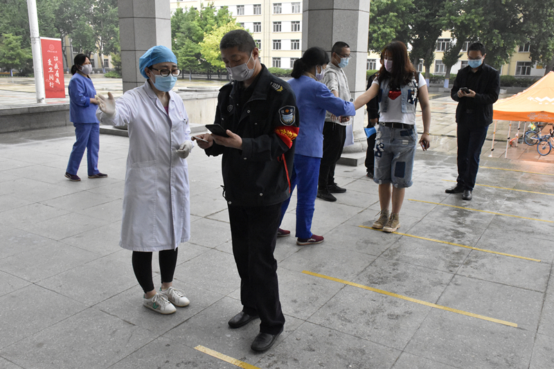 核酸检测采样工作开始后,为避免人员聚集,参加检测人员分批、分时间段抵达检测地点。采样过程中,参加检测人员全程佩戴口罩、按规定保持1米间距,有序扫码、测温入场、取试管、采样依次进行。校医院工作人员指引受检者有序排队、保持人员大间距,并协助第三方解决身份证识别有问题等情况,确保检测工作安全、顺利完成。
