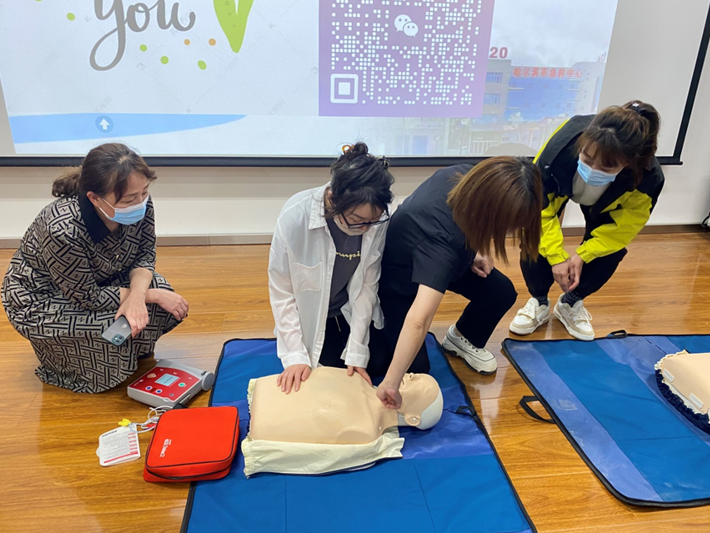 此次培训,特别邀请到哈尔滨市急救中心宣教科黄新颖老师授课,以新版的《心肺复苏急救指南》为依据详细讲解了心肺复苏基本知识、心肺复苏流程及心肺复苏操作要领等内容,并现场进行实际操作。在培训过程中,大家细心听课,操作认真,部分同事在下课后继续练习,学习热情高涨。