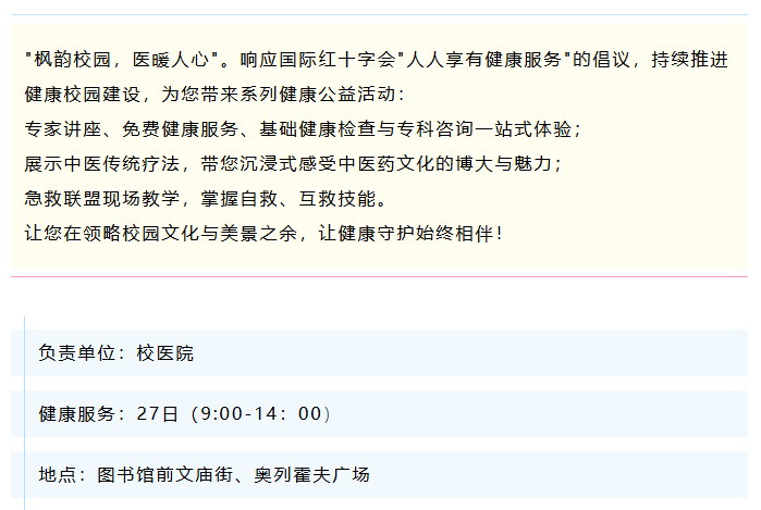 红叶节."同心协力,改变世界"健康服务活动