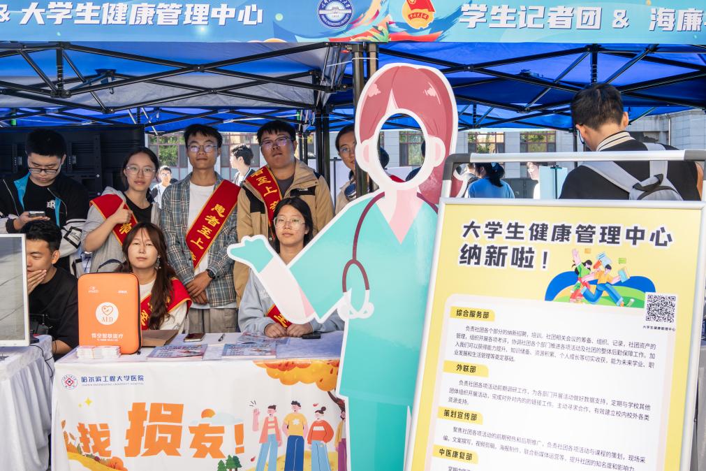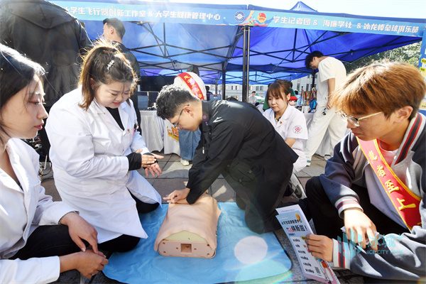 9月27日,大学生健康管理中心于奥列霍夫广场首次亮相,现场分别设有中医康复体验、急诊急救示范、心理调查问卷展位,此次活动共吸纳新成员百余人。