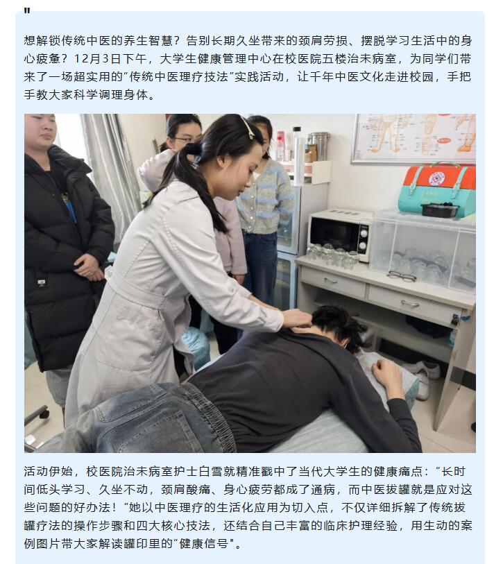 中医 “治未病” 有多香?颈肩 “救星” 来啦——大学生健康管理中心中医实践活动顺利开展