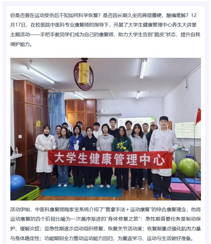 对“脆皮”体质说NO!——大学生健康管理中心“中医大讲堂”让你的身体“重启”升级