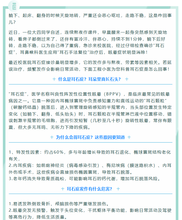 躺平也晕、起床也晕,同学,你可能被"耳石症"偷袭了!